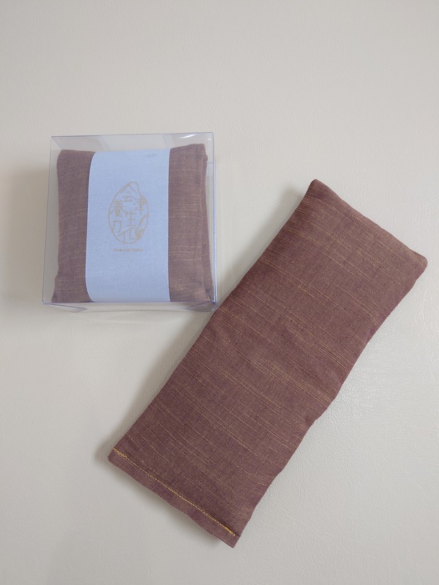 会津養生カイロ \会津の地から、養生を!/ 表 地:会津木綿 内 袋:晒 中 身:会津産玄米 サイズ:縦95mm×横235mm 重 さ:220g 穀物は殻の中に水分を多く含みます。 温めると玄米に含まれる水分が天然蒸気となり放出されます。 それを湿熱といい、その湿熱が体の芯までじんわり、優しく温めてくれます。 一般的なカイロや湯たんぽは乾熱で肌表面は温めることはできますが、その熱が体の芯部まで到達しないといわれています。 使い方 ①レンジ500wで約40~50秒程チンして温めます。 レンジにより異なるのでご自身で心地良い温度を調整して下さい。 ②温かくて心地いいなぁと感じる温度が丁度いいです。 ③目元・お腹・お尻・仙骨・肩・首などなど 温めたいところにお使いください やけどには十分にご注意いただき 温めすぎた場合は少し冷ますか、タオル等に包んでからお使いください。 夏場は冷蔵庫にて冷やしてクールダウンにもお使いいただけます。 注意事項 カイロが冷たくなってきたら再度温め直したくなりますが、短時間の間に繰り返し何度もレンジで加熱することは豆が乾燥して割れてしまったり、小豆や玄米が焦げてしまう原因にもなり大変危険です。 再び温める際は、4時間以上の間隔を空けてから温までください。 約1年~1年半 200回〜250回程度 洗濯不可